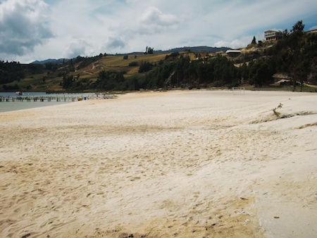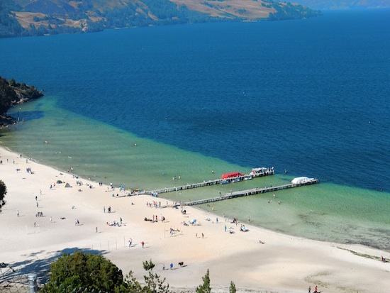 湖に真っ白な浜があるなんて不思議な光景だ。
