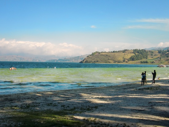 この先すぐに村があり、その分かれ道を右に曲がると大きな湖、トタ湖が姿を現した。