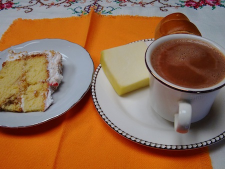 それとロールパンとココア、それから細切りのピースケーキを出してくれた。