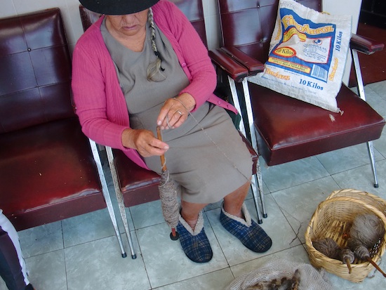 ↑羊毛かなにかを毛糸にしている様子。これがポンチョになるらしい