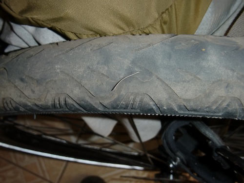 と起こして上げたはいいが、その夜、直したはずのタイヤがまたペッタンコになっていて