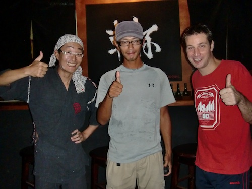 荷物を調達していたらしく、小さな店の前、つまりちょうど歩道に立っていて車道を走るこちらを見つけてくれたのだ。