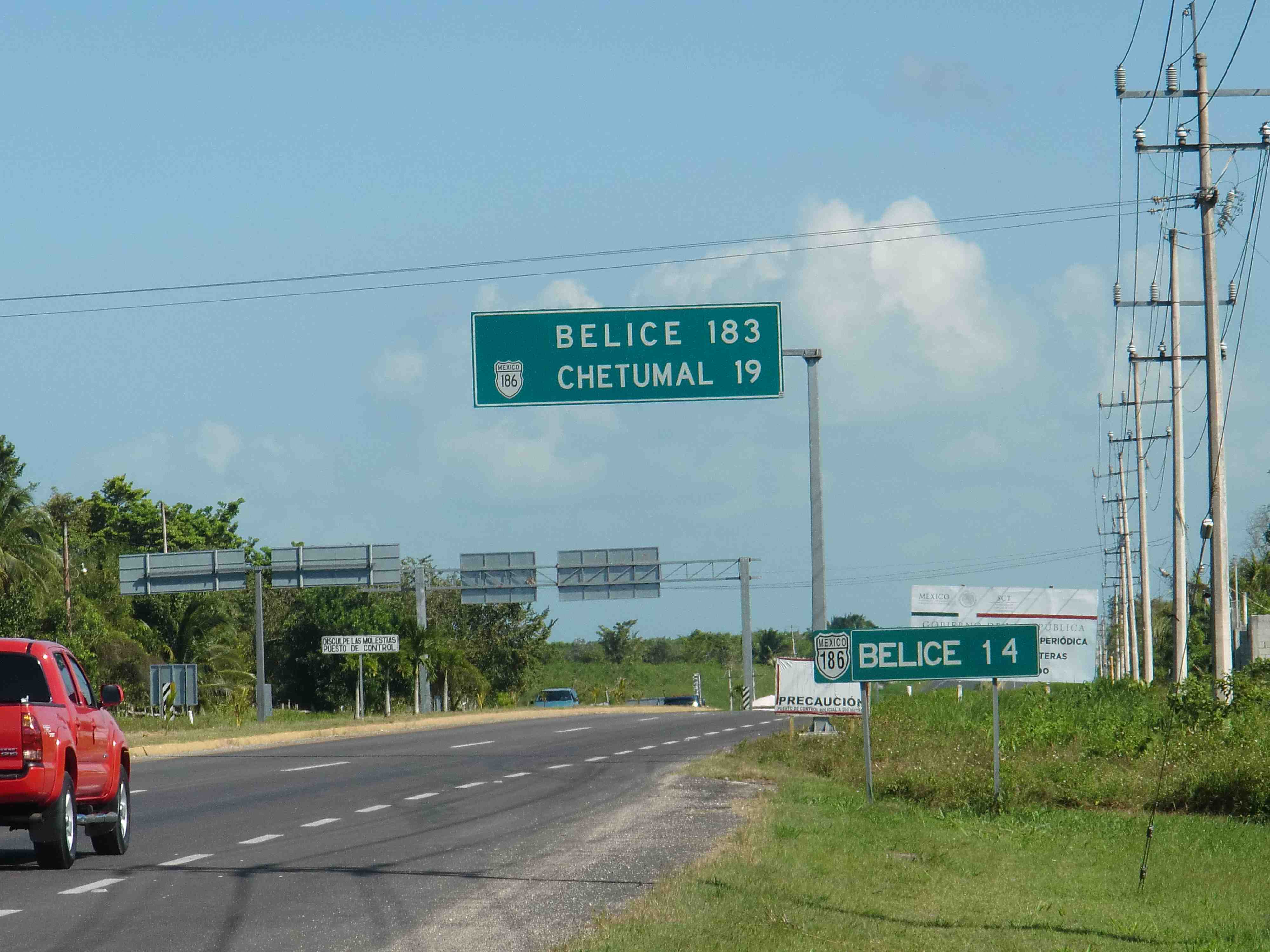 ↑右の看板がベリーズ国境、上のがベリーズシティのことだと思われる
