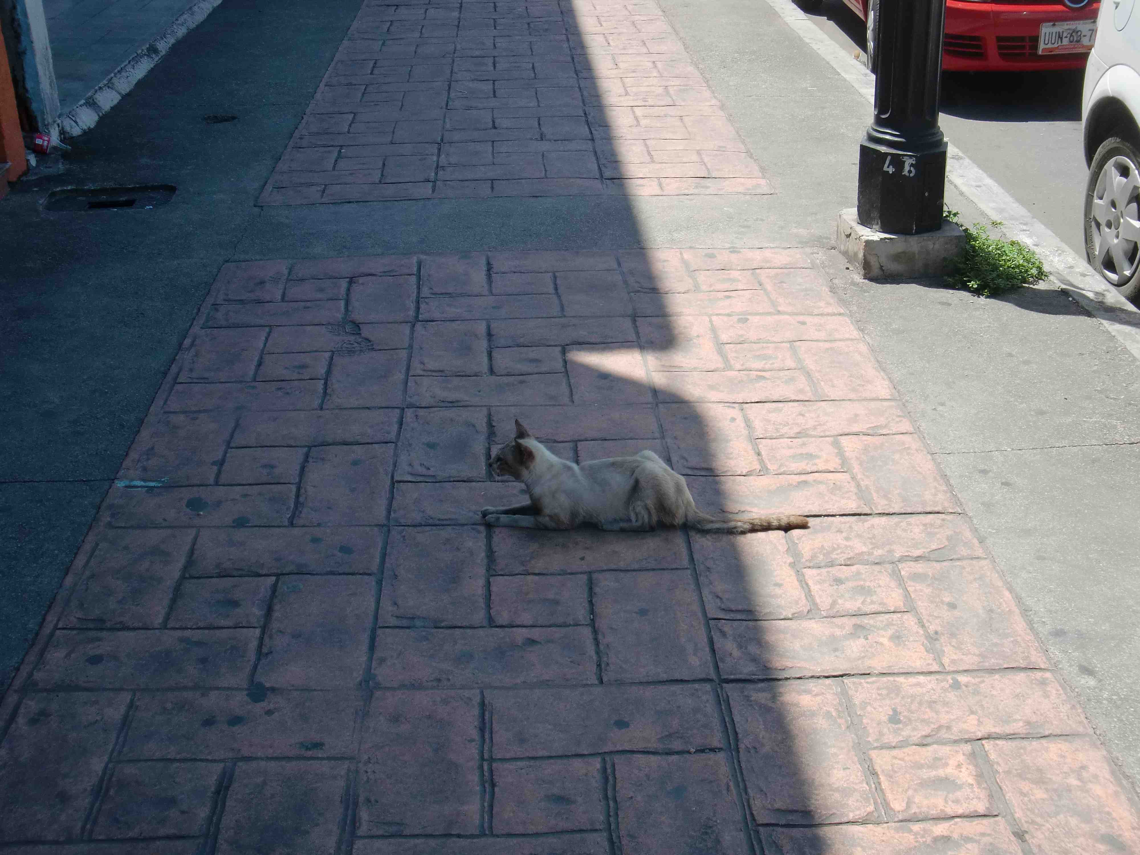 ↑痩せたネコが堂々と歩道を占拠