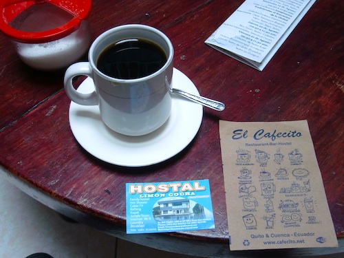 ↑コーヒーを飲みながら隣の国エクアドルの情報をゲット