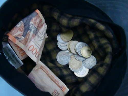 音楽が終わると大きな拍手とともにチップが投げ込まれる。