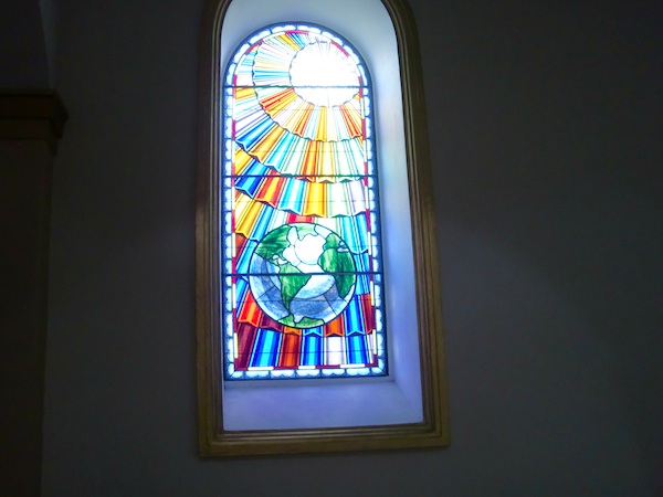 ↑ステンドグラスの光が壁に映っている感じがいいですね