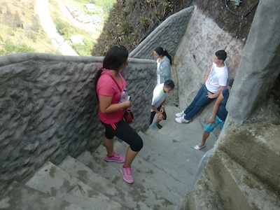 このロープをつたって真ん中に小ちゃく見えている白い神像(見えるかな?)を拝みにいく人もいるらしい。