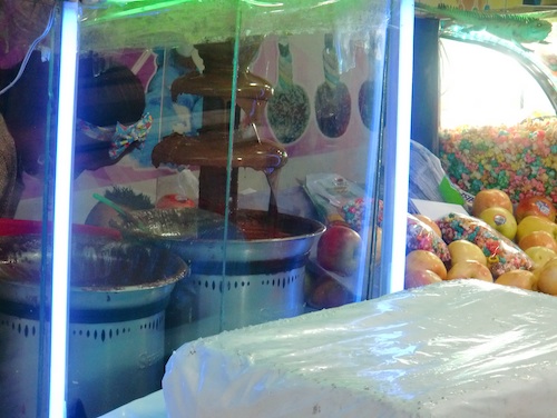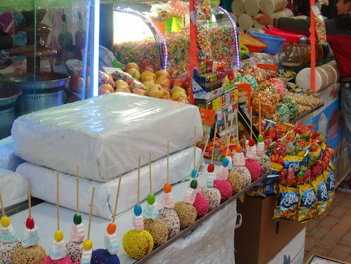 日本と同じようにりんご飴が売っている。