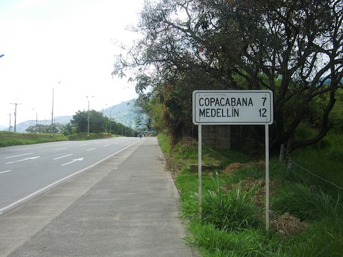 看板にはメデジンまであと12kmの文字が。