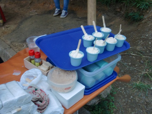 道の途中、なにかをコネコネしている光景を発見。
