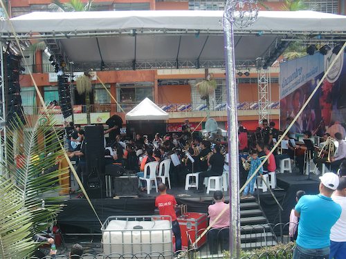 金曜から土曜にかけてなにかのイベントがあるらしく、広場では大きなステージが用意され壇上で吹奏楽のバンドたちが楽しそうに演奏している。