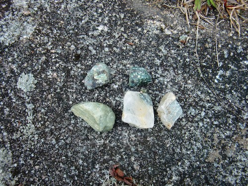 このあたりの石は緑色や白っぽいものが多い。