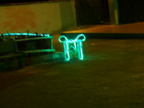 壁中に電飾がつけられている建物。