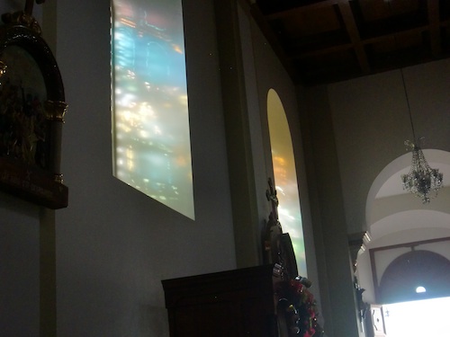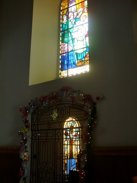 中型のステンドグラスが壁のサイドに並んでいた。