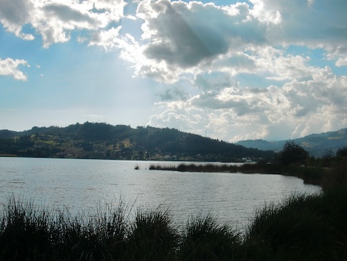 緑をまとった丘陵は美しくそびえ、湖までの道は広く清潔でのどかだった。