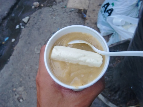 自転車では通りにくい露店街に入ったとき、スーパーの入口で発砲スチロールのコップに入った何かを売っているおばちゃんが目にとまりました。